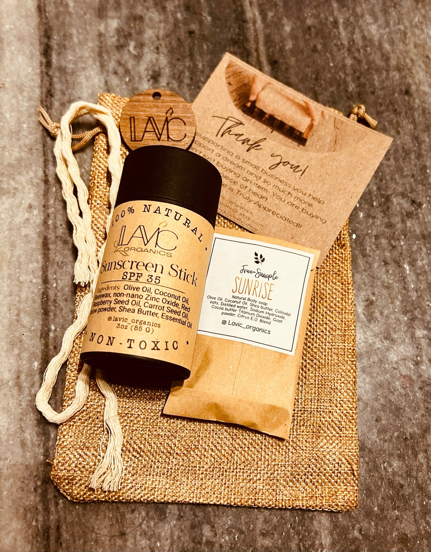 LaVic’s sunscreen is made for your face and body. Our active ingredient, non-nano zinc oxide, sits on top of your skin (instead of soaking in, like chemical sunscreen) and protects you by scattering, absorbing, and reflecting the sun’s rays